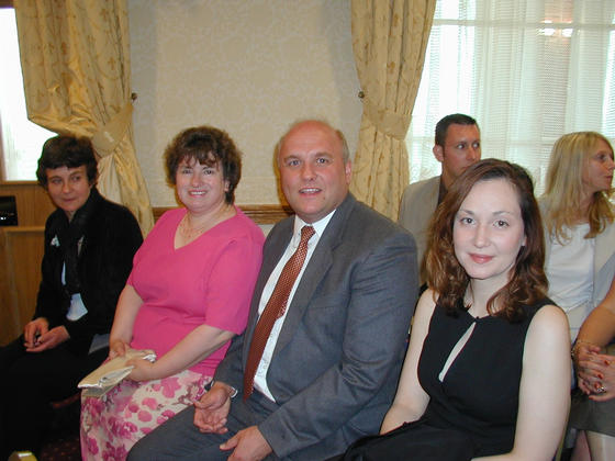 A. Marilyn, Linda, Richard, and Laura wait for the ceremony to start.