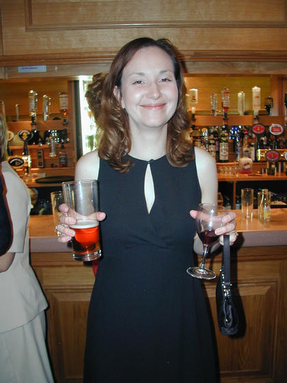 Laura subscribes to the "drink early, drink often" philosophy. (Just kidding, she was holding my drink.)