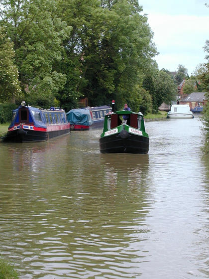 Barges make their way down the waterway.