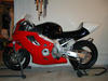 Photos of the F4 in the new 2002 TDR paint scheme. Paint by: Steve Pasquale Steve is super nice guy and did a fantastic job. He is going to shoot the XX for me this summer and I highly recommend talking to him if you are thinking of painting your bike or cage. OK, enough of the PR stuff. :) |