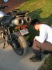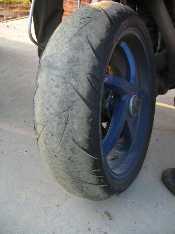 | 5800 miles, and down to chords. When we got to Willville on the way back, Tim checked his rear tire and found it was down to the chords. Will made some calls, and his friends, Jim Wagoner, had a used tire for $20! |