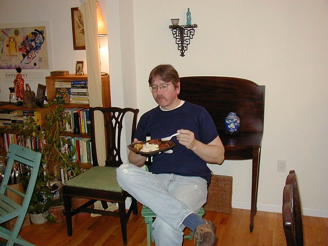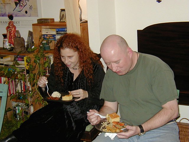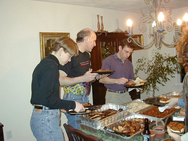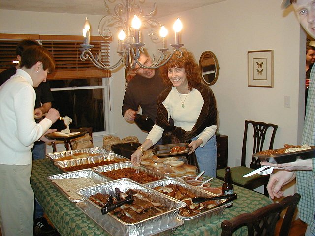Kevin looks on as Jodi helps herself to some of the yummy BBQ while