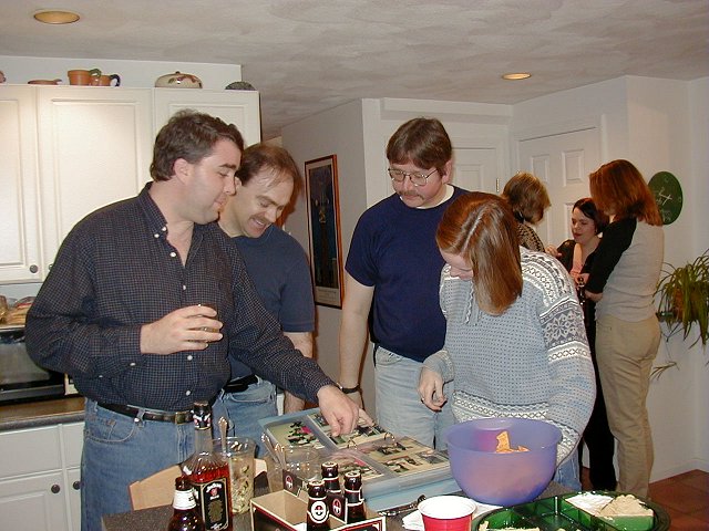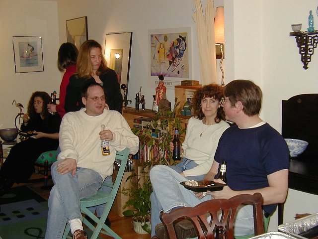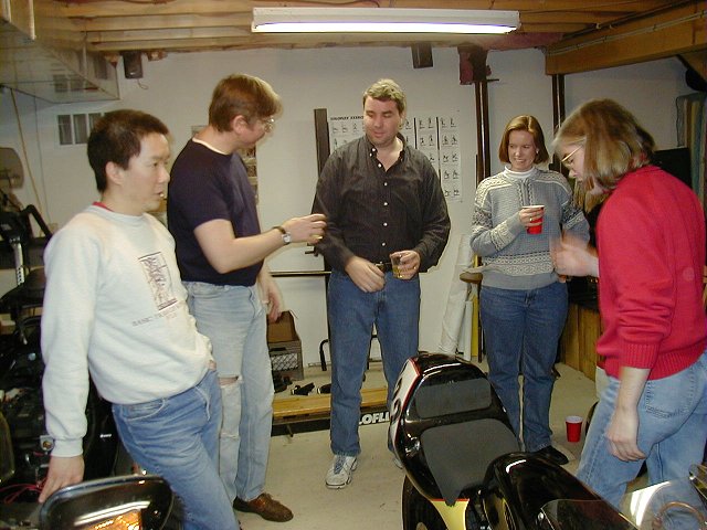 Bruce, Bob, Falvio, Kathy, and Christine hanging out in the basement.