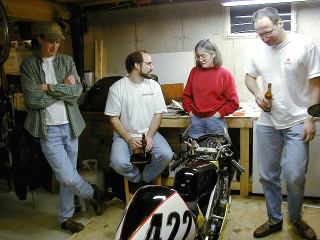 Rob, Reto, Christine, and Andy checking out Dane's new ride.