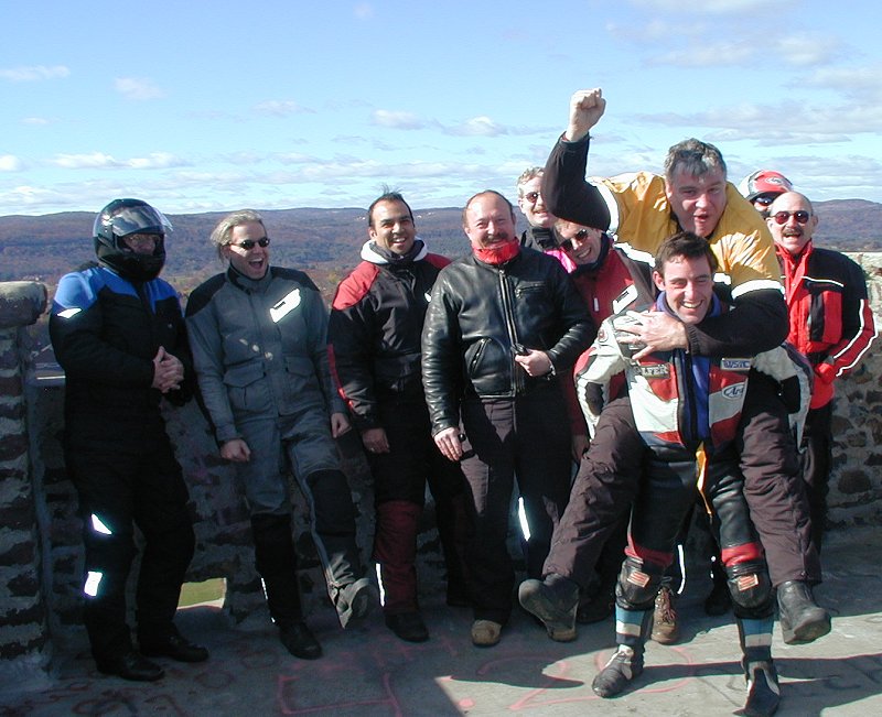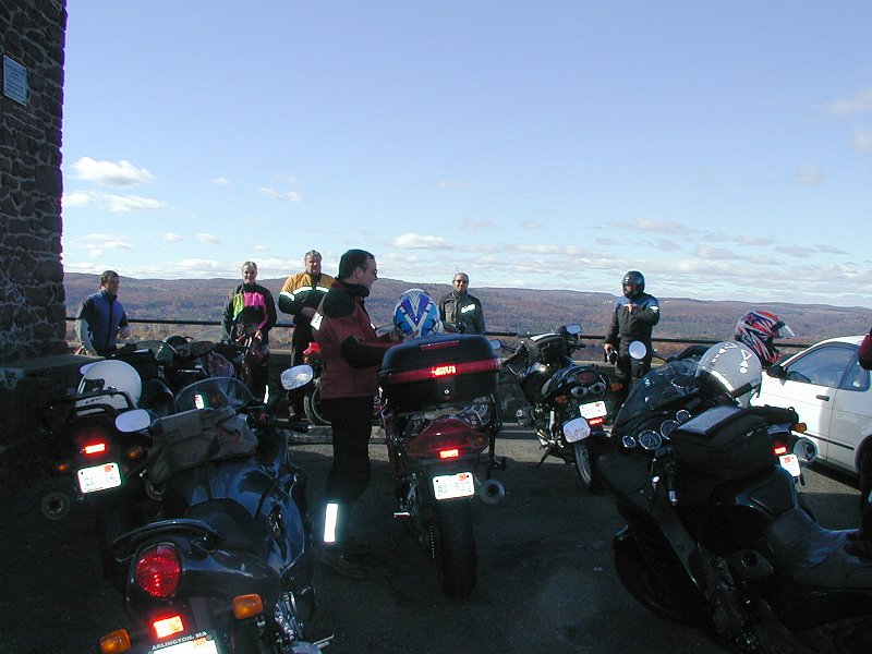 | Patrick called for a ride after cleaning off the cobwebs from and re-registering Fizzer. Mark offered to lead the ride, so a group of NEDoD types met up at Moto Market and took off for a fun filled day of fall riding. While a bit chilly, the ride was fantastic. Mark lead up through southern NH and northern MA, stopping in Greenfield for lunch. Patrick got to practice his 3-gear wheelies, and only overshot one corner! The only cop we saw was after the final stop day, when were all on our way home. The cop wasn't running radar, and didn't even blink as we passed him. Must of been quitting time. |