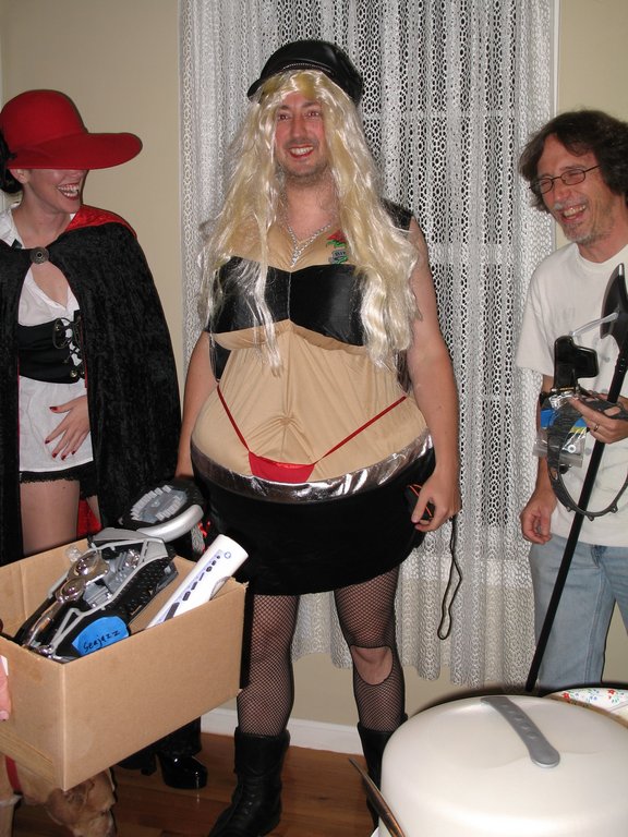 Annie as Puss in Boots, and Rupert as a biker chick.