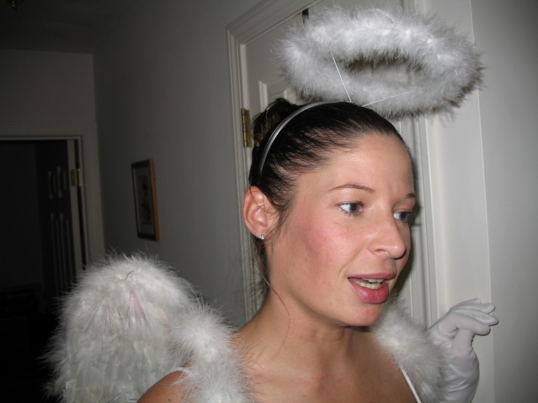 Mary and her halo, which stayed on the ENTIRE night, even in the hot tub!