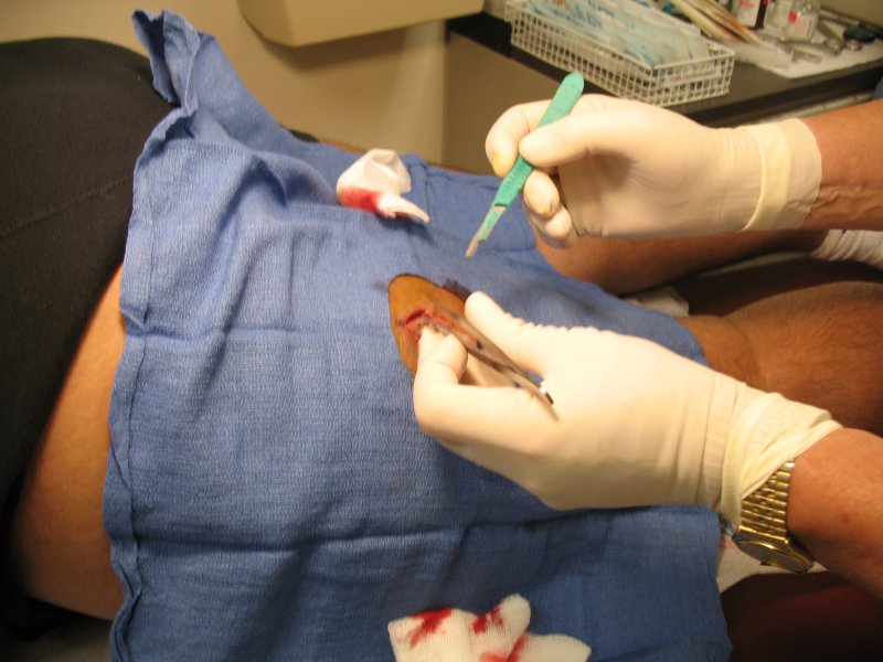 Dr. makes initial cuts.