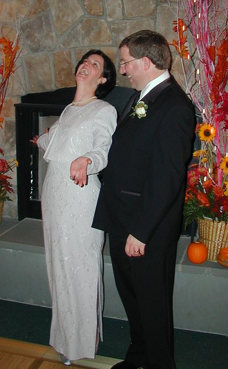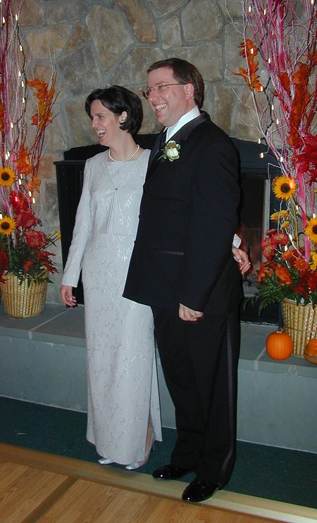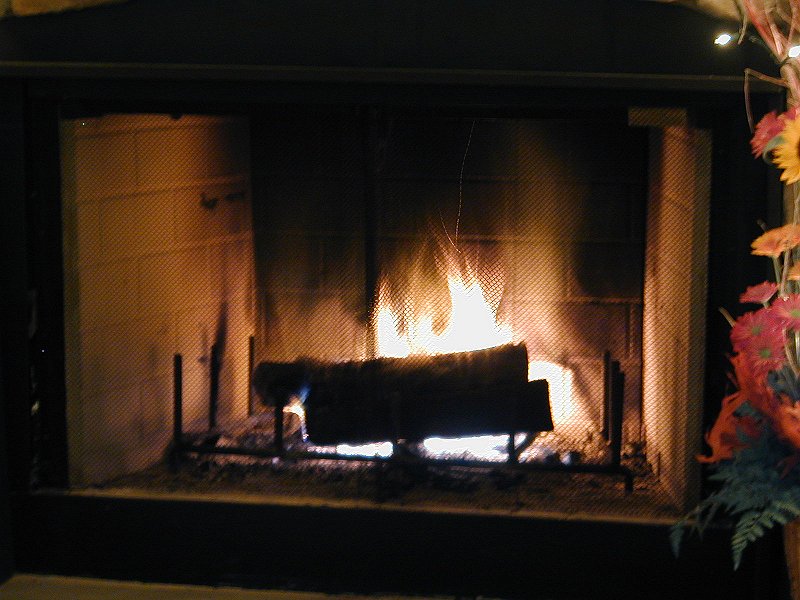 Lisa and Greg pose in front of the fire. |