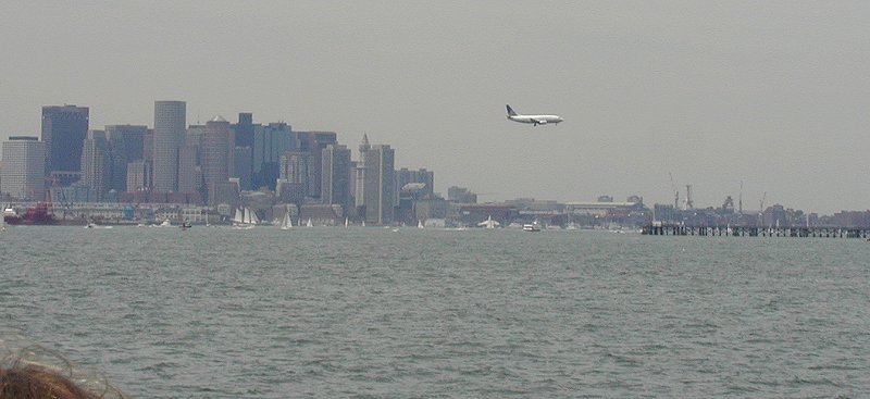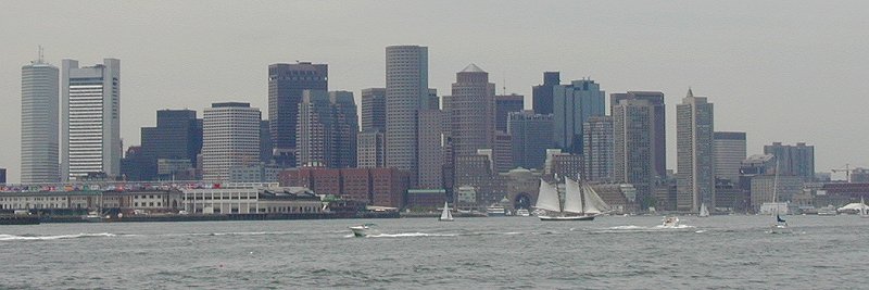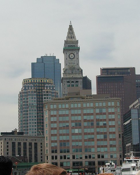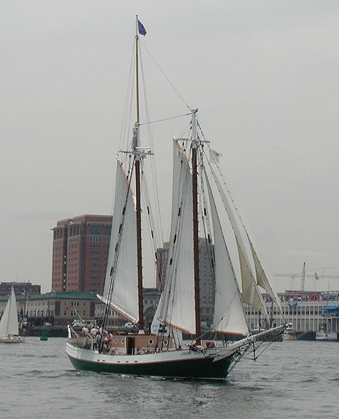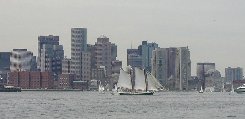 One of the ships in the bay.  This was just a small one. If it had been a few weeks later, mom would have got to see a whole bunch of tall ships as Sail Boston came into town.
